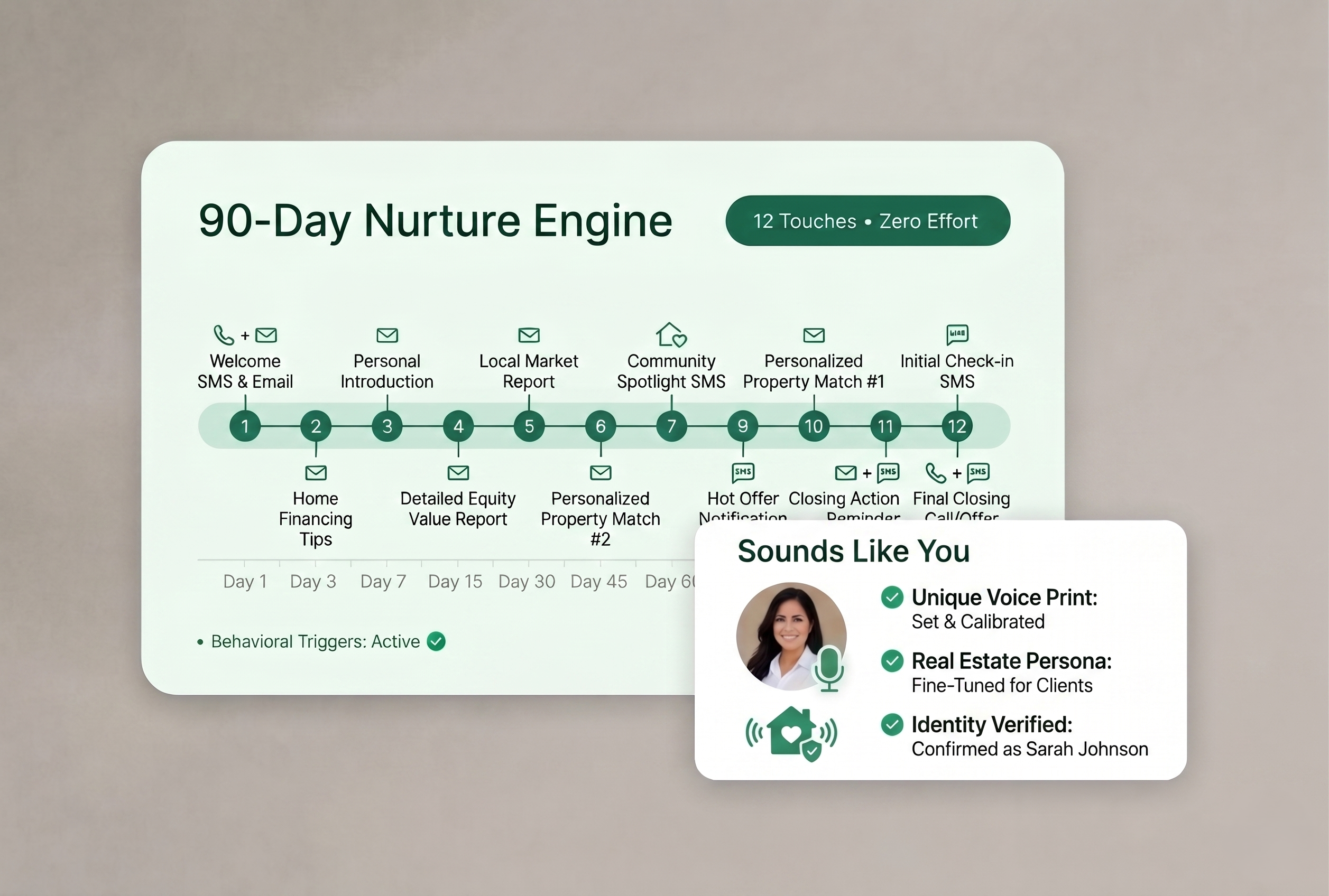 Convert online leads seamlessly with an automated 90-day follow-up plan that sounds authentically like you. Sequences run across SMS and email, timed perfectly with behavioral triggers. You handle the appointments, the system handles the touches.