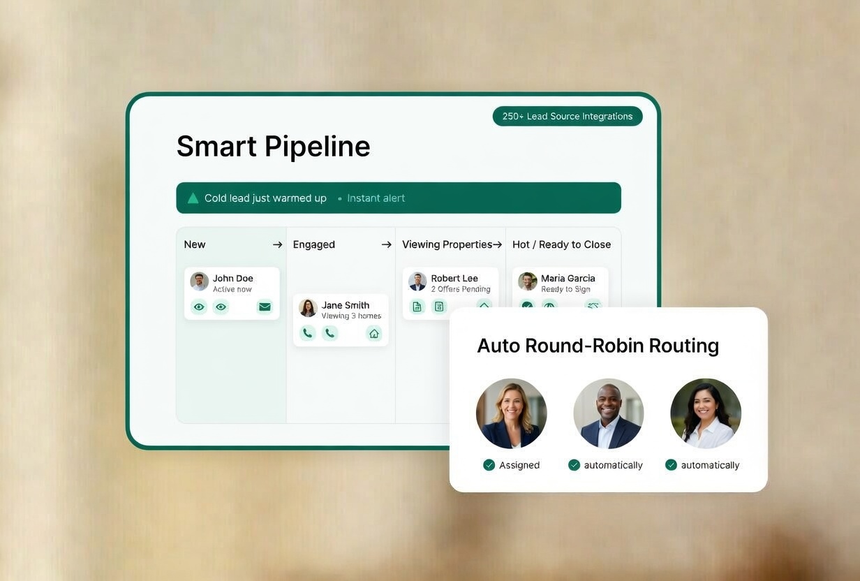 Know exactly who matters today. Pinova highlights active buyers, shows what properties they're viewing, and alerts you instantly when a cold lead warms up. For teams: automatic round-robin routing guarantees every lead meets the right agent.